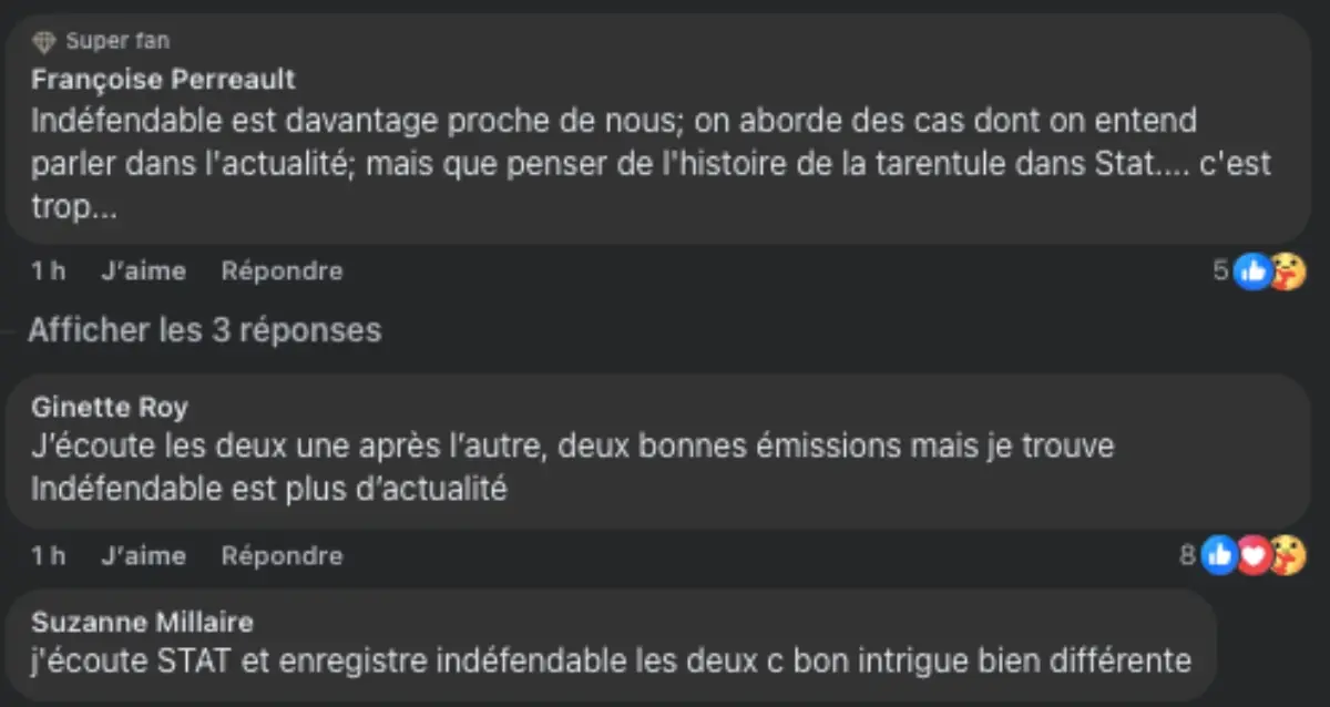 Cette semaine, les résultats des cotes d’écoute de STAT et Indéfendable ont pris par surprise les téléspectateurs. Plusieurs personnes écoutent l’une ou l’autre de ces émissions, certains même les deux.