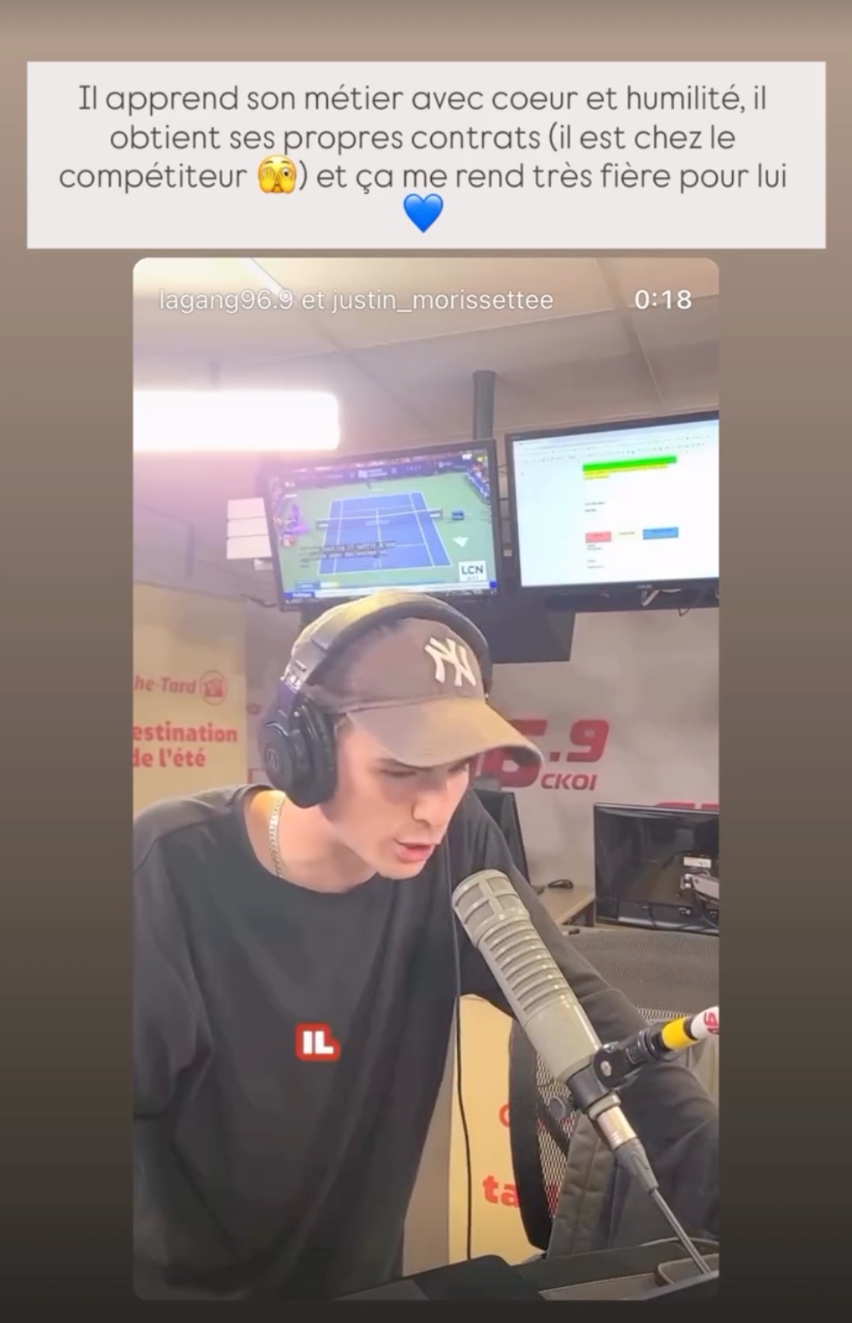 Véronique Cloutier a repartagé la publication en question, en lui adressant un beau message d’encouragement. Entre autres, elle souligne que son fils débute sa carrière à la radio, sans aide extérieure.