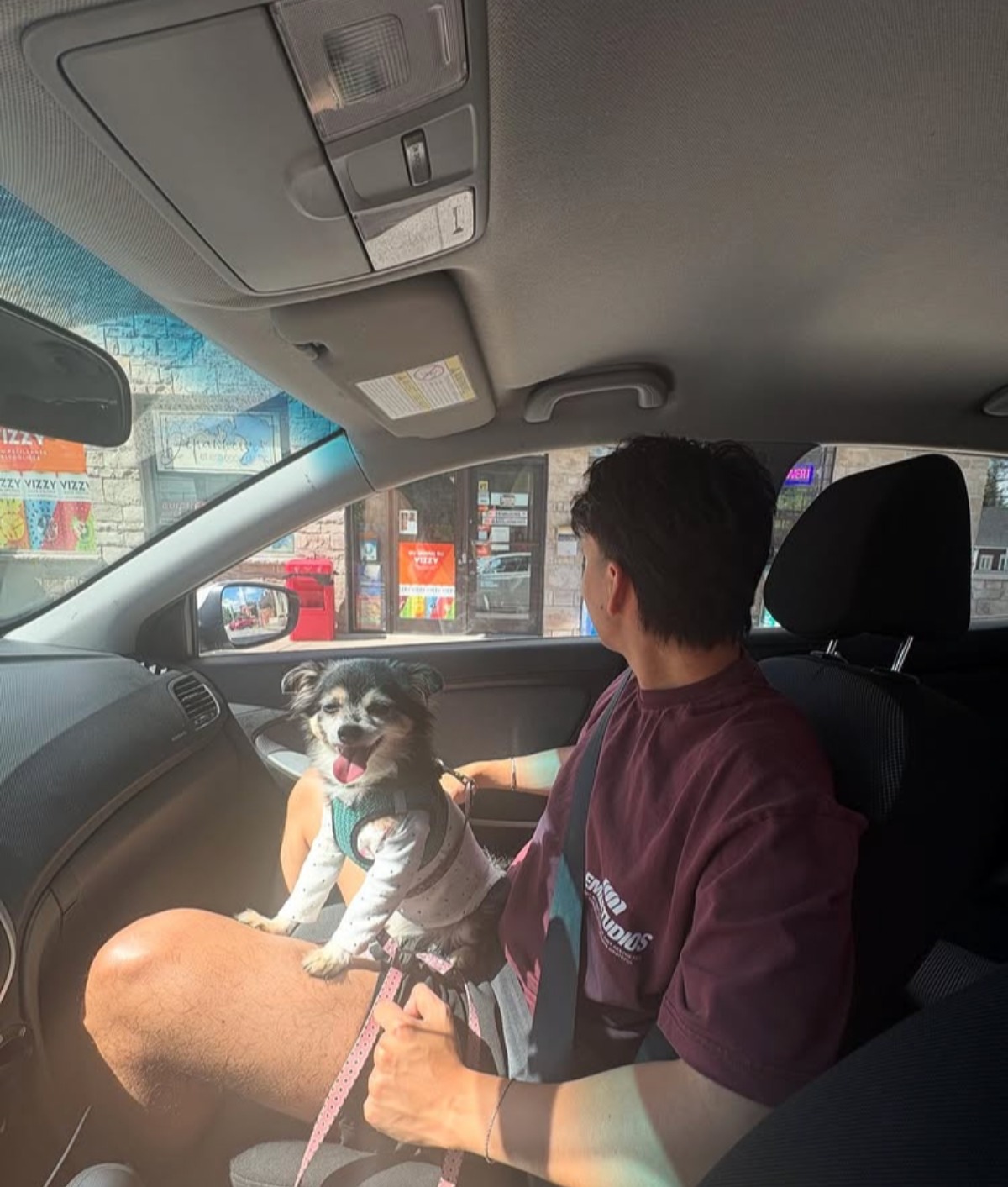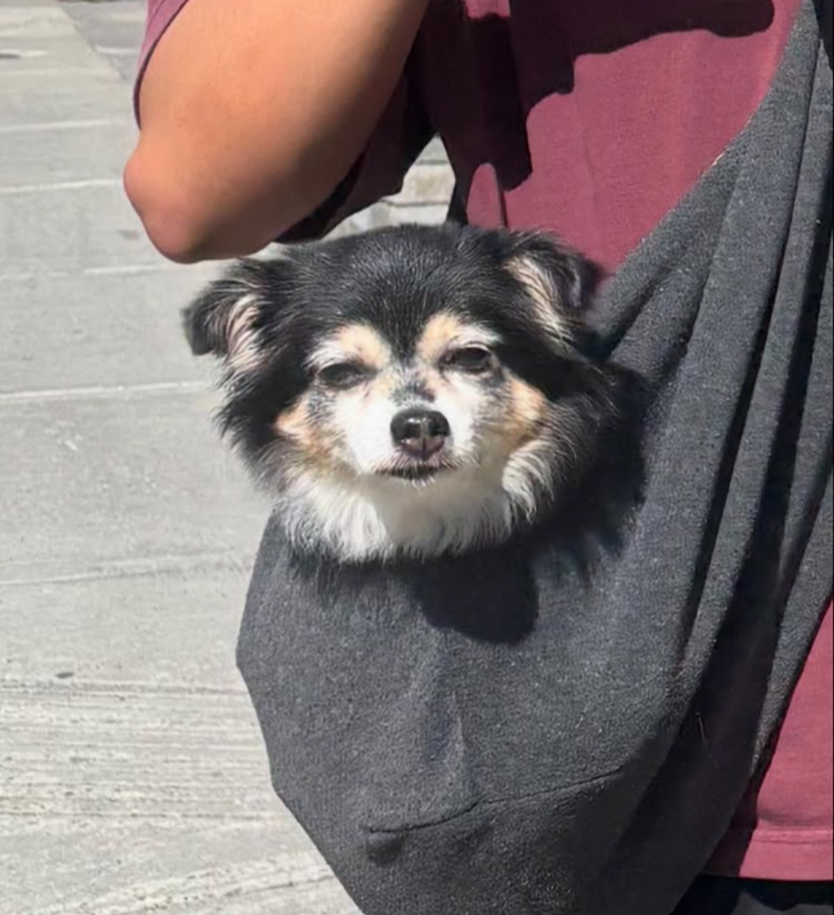 On peut notamment voir le jeune homme dans une voiture avec un petit chien sur ses genoux. L’animal se retrouve également dans les sacs d’Eduardo Gomez sur les autres images.