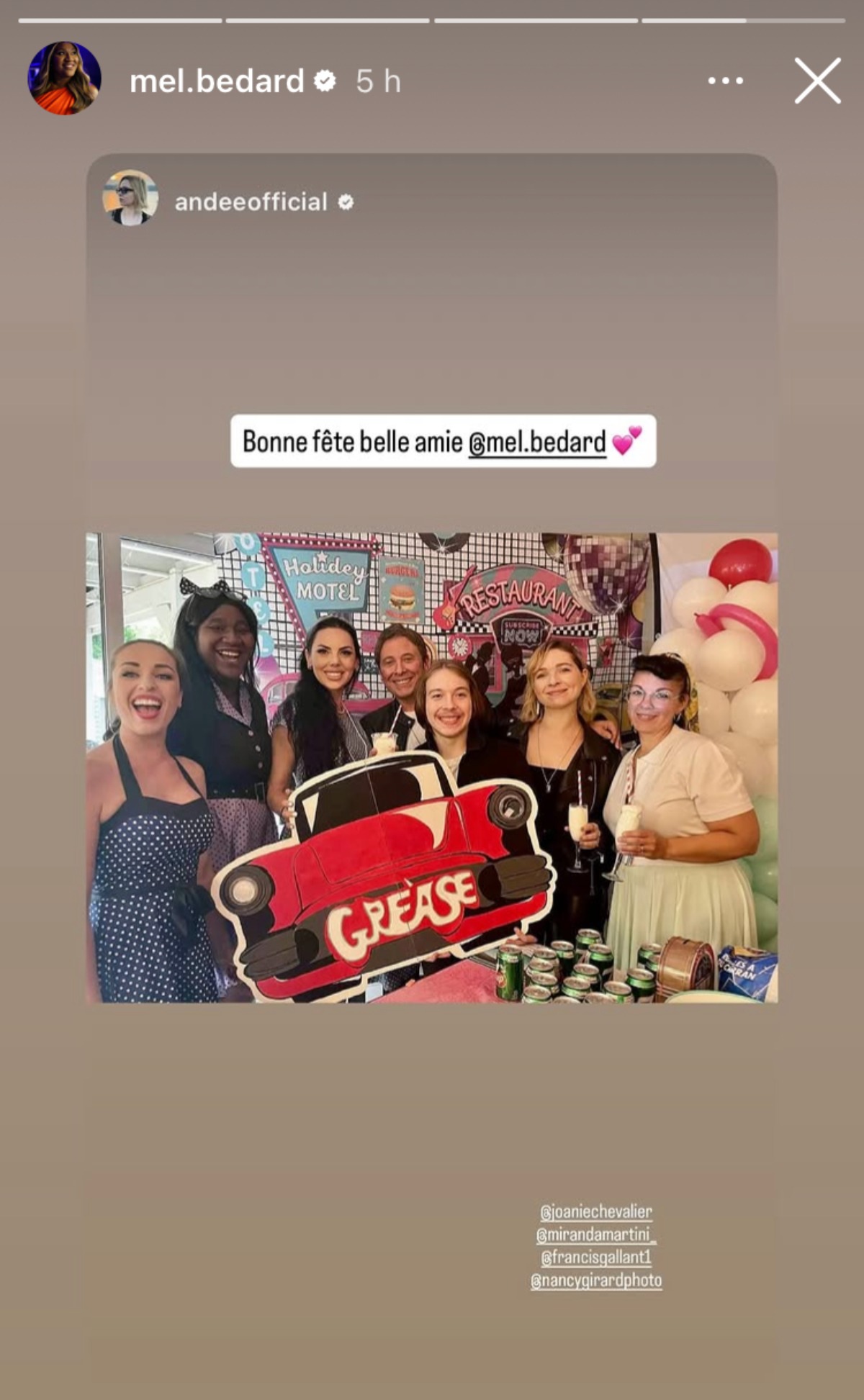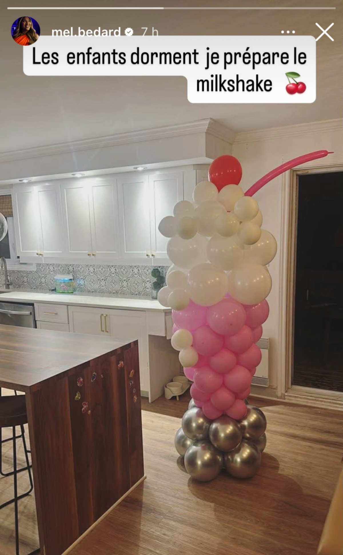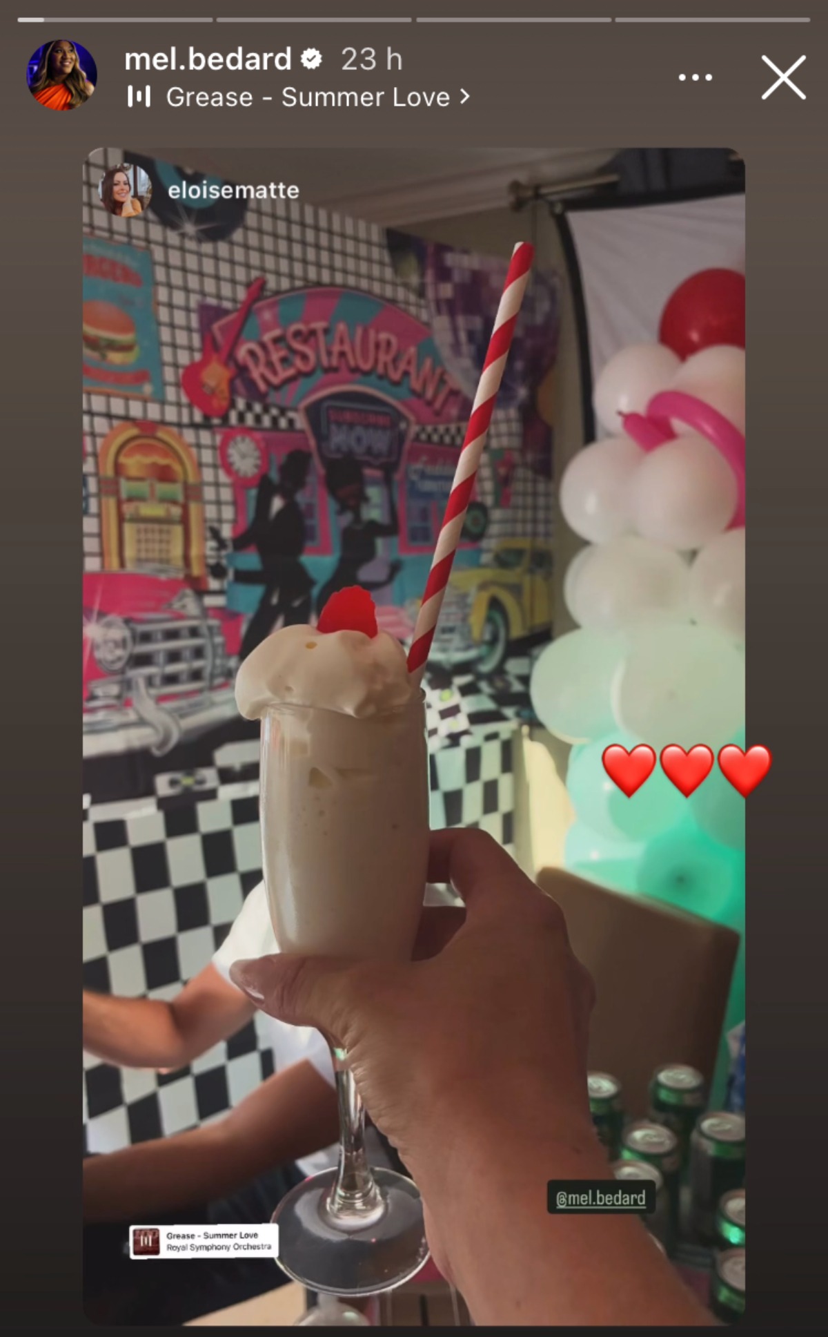 Pour sa fête, Mélissa Bédard a eu le droit à des décorations sur la thématique de Grease! Parmi les artifices imaginés pour évoquer le célèbre film, tels qu’un grand verre de milkshake, fabriqué à l’aide de ballons blancs et roses!