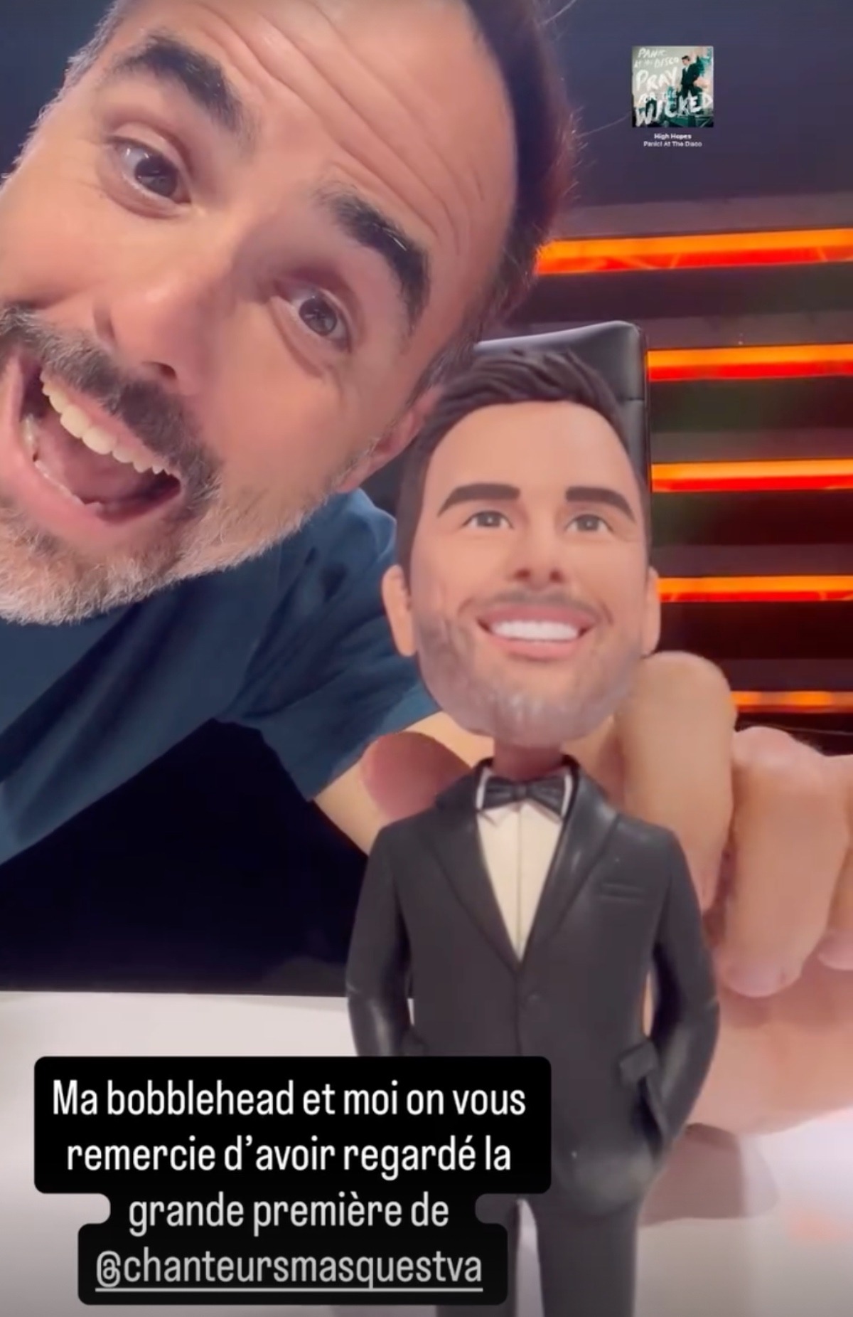 « Ma bobblehead et moi on vous remercie d’avoir regardé la grande première de@chanteursmasquestva »