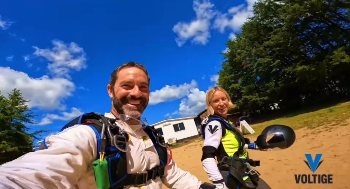 Effectivement, Guillaume possède sa propre compagnie de sauts en parachute, qu’il a intitulé Voltige.