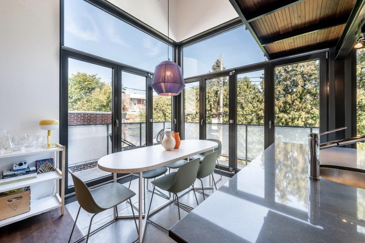 « Condo lumineux au coeur du Plateau! Aire ouverte avec plafond cathédrale, mezzanine style loft, balcon ensoleillé et à deux pas du Parc La Fontaine. Un bijou unique à découvrir ! […] Ce condo est un vrai petit bijou lumineux avec sa grande aire ouverte, ses immenses fenêtres et son plafond cathédrale qui laissent entrer la lumière à toute heure de la journée.