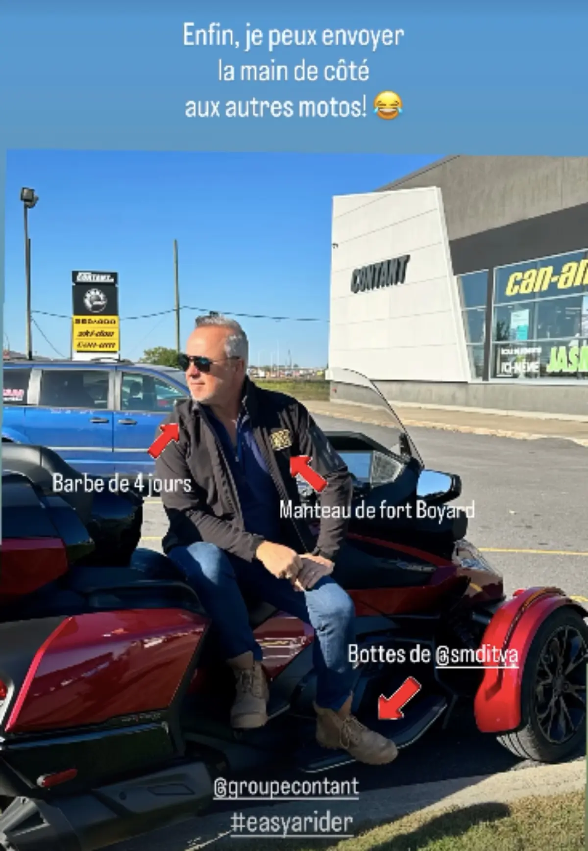 Gino a partagé une photo sur laquelle on peut le voir assis sur son engin. Il faut dire qu’il a fière allure!