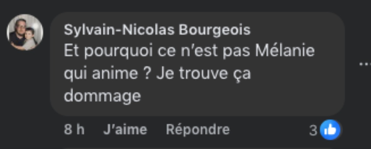 « Et pourquoi ce n’est pas Mélanie qui anime ? Je trouve ça dommage »
