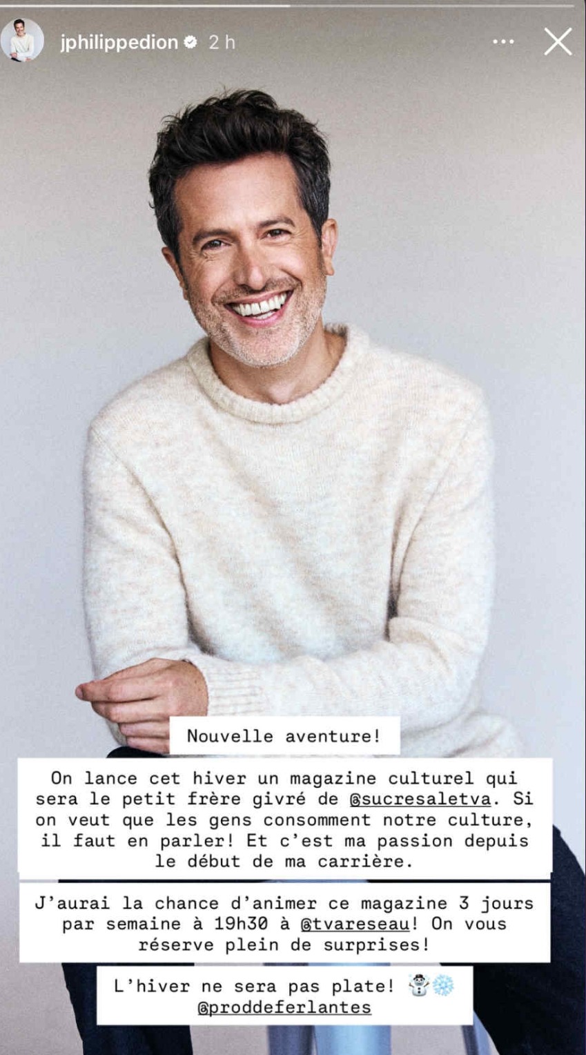 Il s’agit d’une nouvelle émission culturelle à la sauce de Sucré-Salé, qui sera appelée: Sucré Givré! Elle fera ses débuts dès l’hiver 2026, et l’animation sera confiée à nul autre que Jean-Philippe Dion!