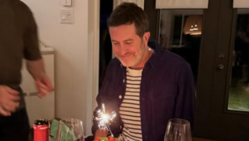 Jean-Philippe Dion pose avec le gâteau qu’il a reçu pour son anniversaire dans les dernières heures
