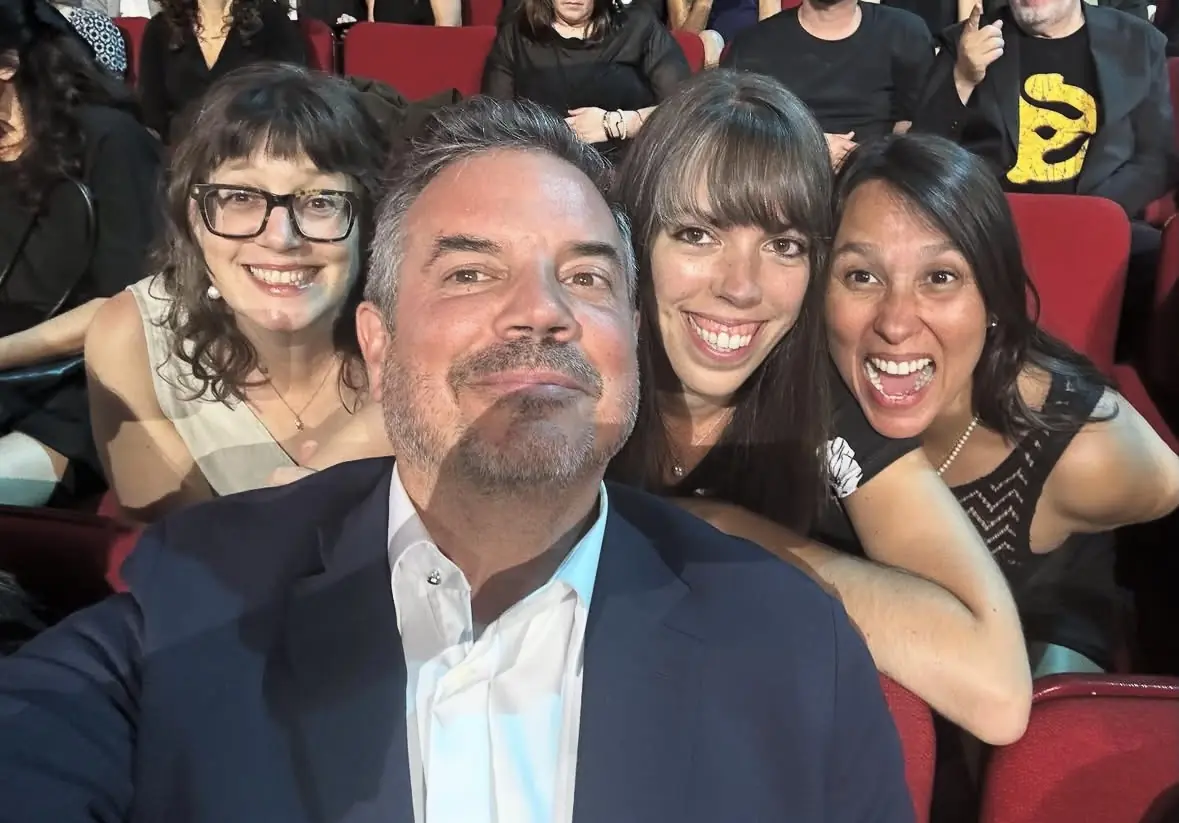 Voici Charles avec les productrices et la coordonatrice de la post-production de Alertes, la preuve que Charles Lafortune tient à coeur son équipe et sa boîte de production.
