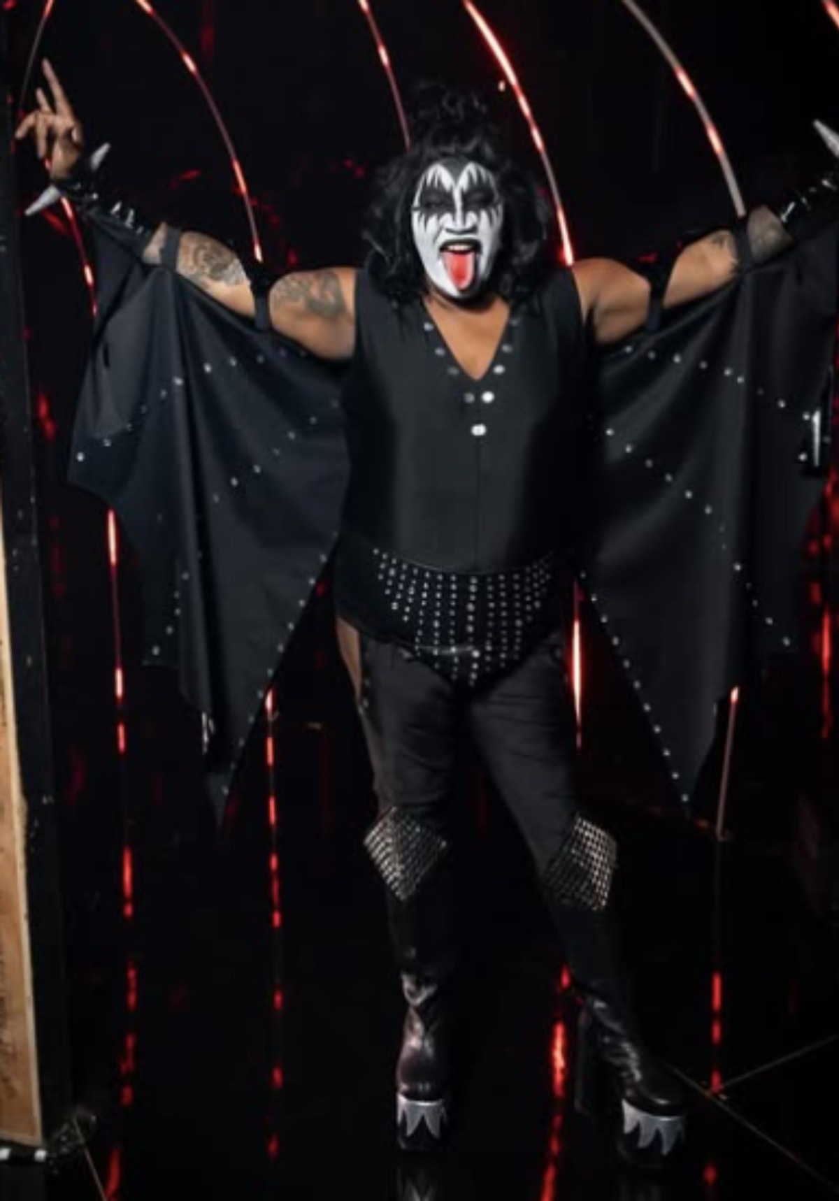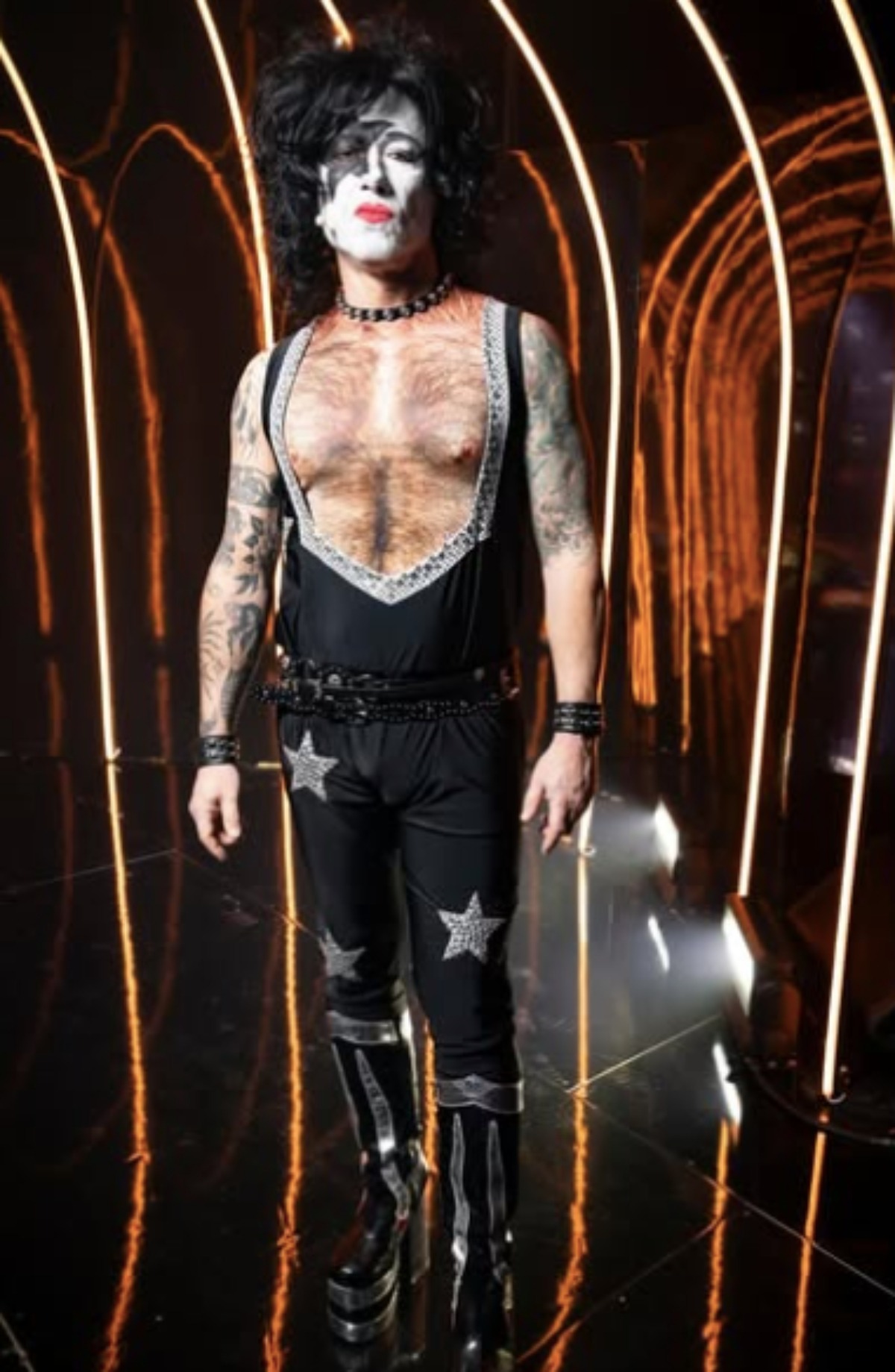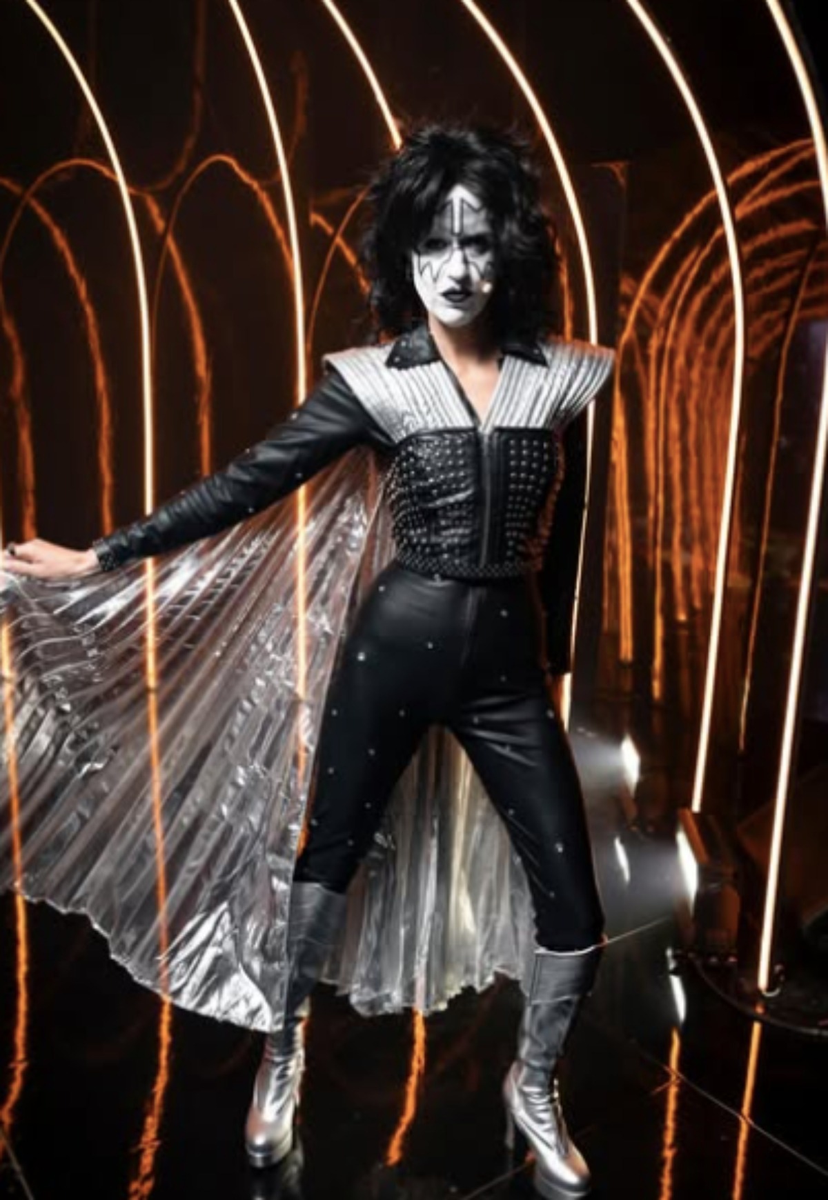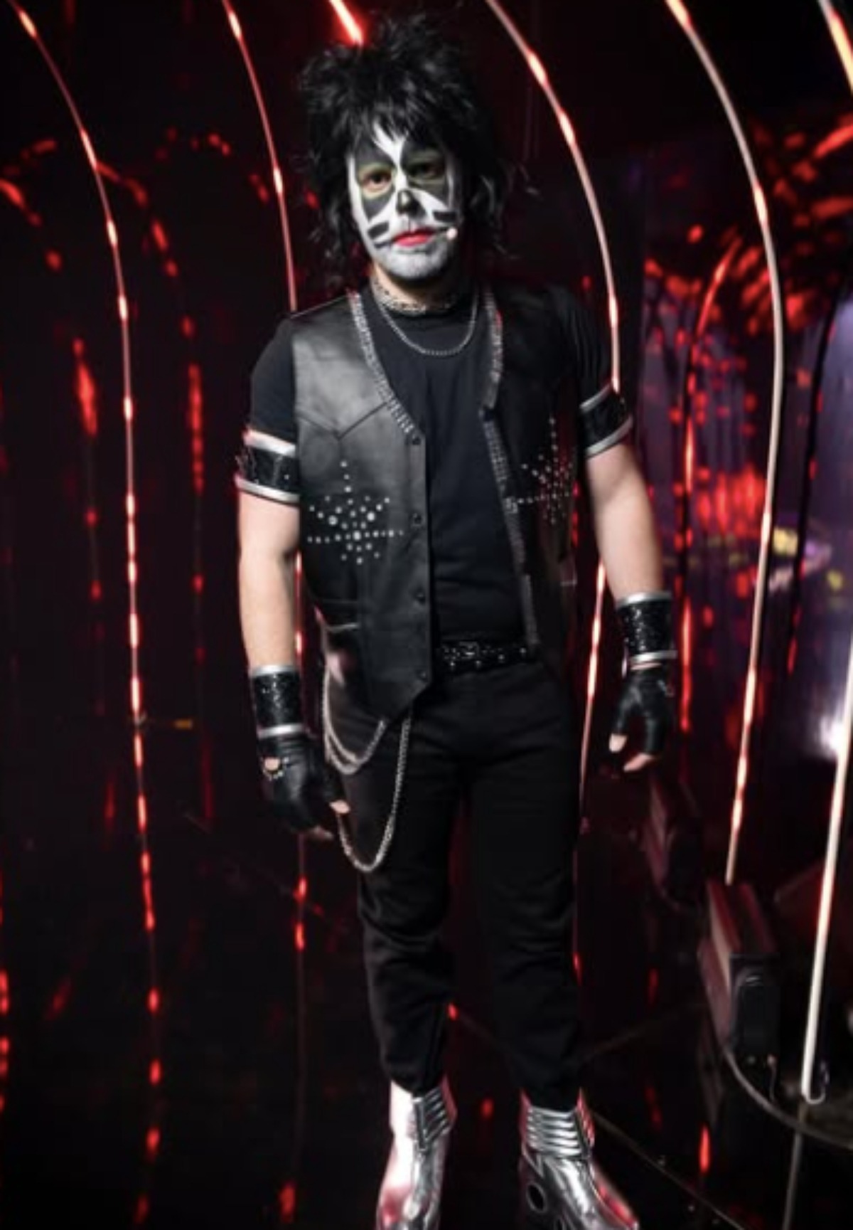 Voici les costumes des quatre enquêteurs de Chanteurs Masqués, suivi de celui de Sébastien. Ils sont déguisés en les membres du groupe Kiss, à part l’animateur qui est quant à lui costumé en Willy Wonka.