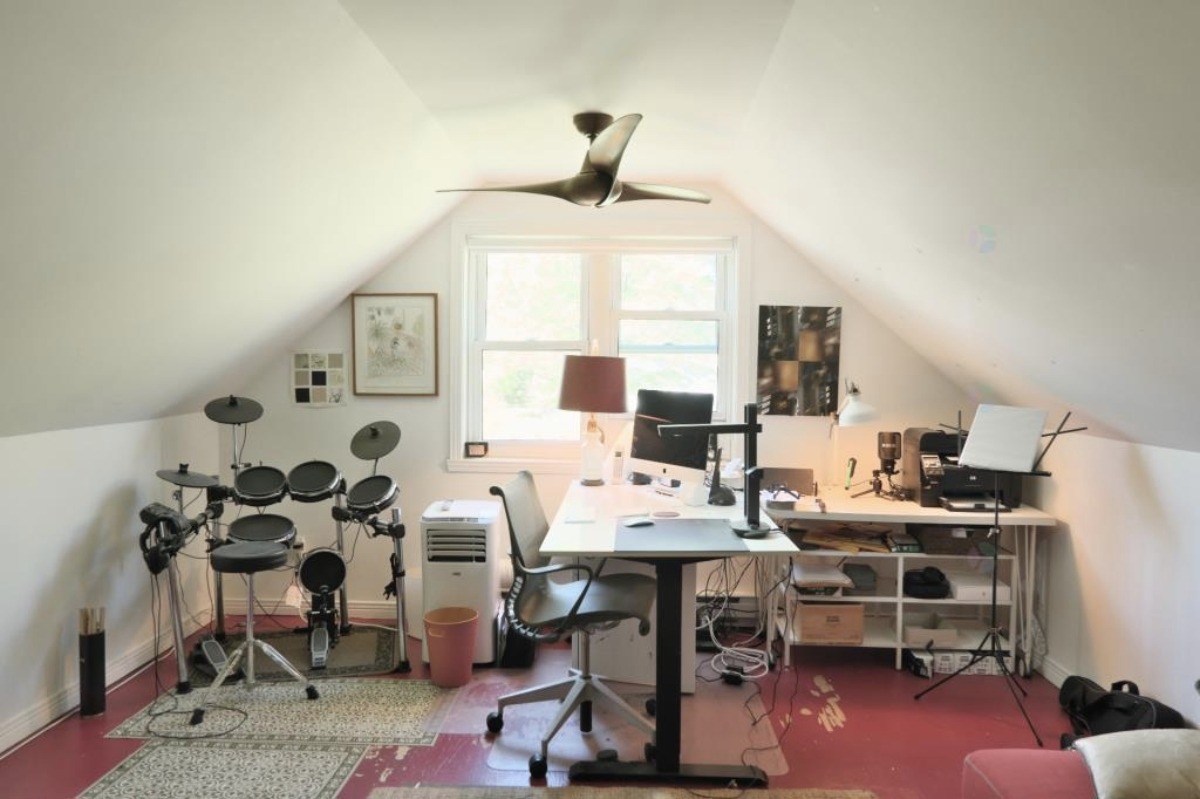 La maison mise en vente par Raymond Cloutier a quatre chambres, une cuisine rénovée et deux salles de bain. Il y a aussi un foyer et une véranda.