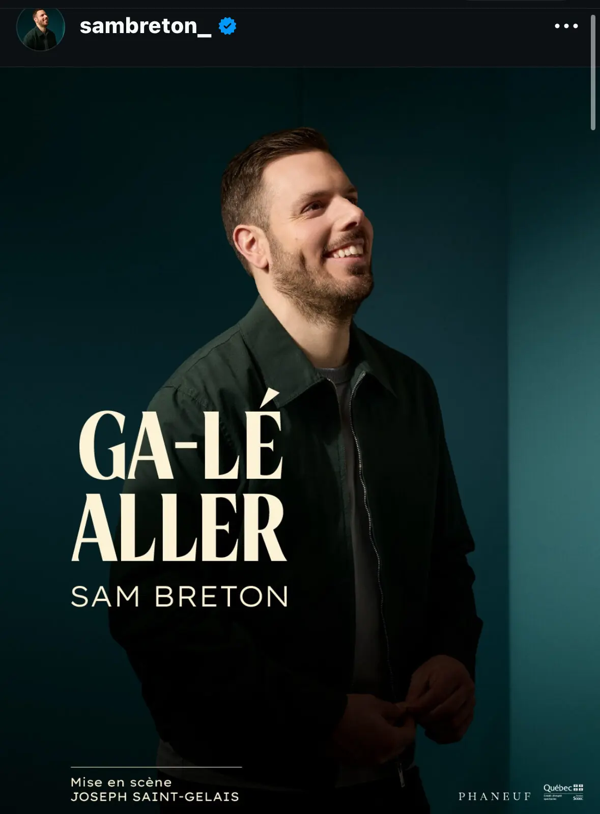 Sam Breton, reconnu pour son humour très authentique, a surpris ses fans avec une annonce très attendue : il lancera son deuxième one-ma- show, intitulé Ga-lé Aller.