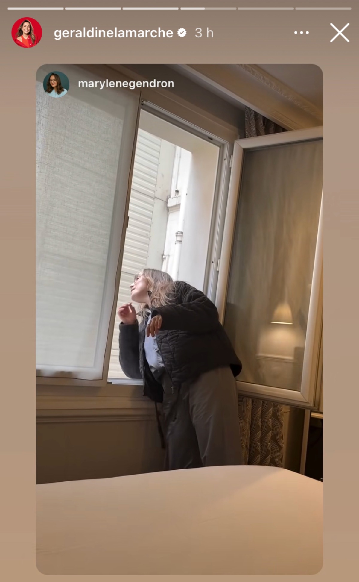Il faut souligner que Géraldine est en voyage en compagnie d’une autre vedette de la Belle Province! Effectivement, l’animatrice de radio se trouve avec Marylène Gendron une humoriste connue. Cette dernière a publié une vidéo où l’on peut aisément reconnaître Géraldine. Celle-ci est penchée à la fenêtre d’un bâtiment. Elle s’amuse visiblement à déployer haut et fort son meilleur accent français, à même la rue de Paris.