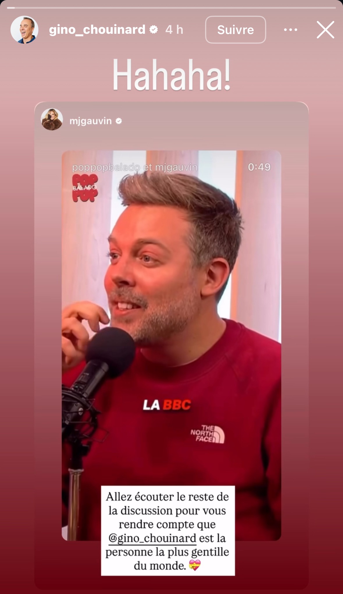 Inutile de mentionner que cet appel inattendu rappelle la nature bienveillante de Gino et sa bonne humeur derrière la caméra. Gino a republié la publication de la page de Marie-Josée témoignant qu’il a probablement ri de leur segment lui aussi.