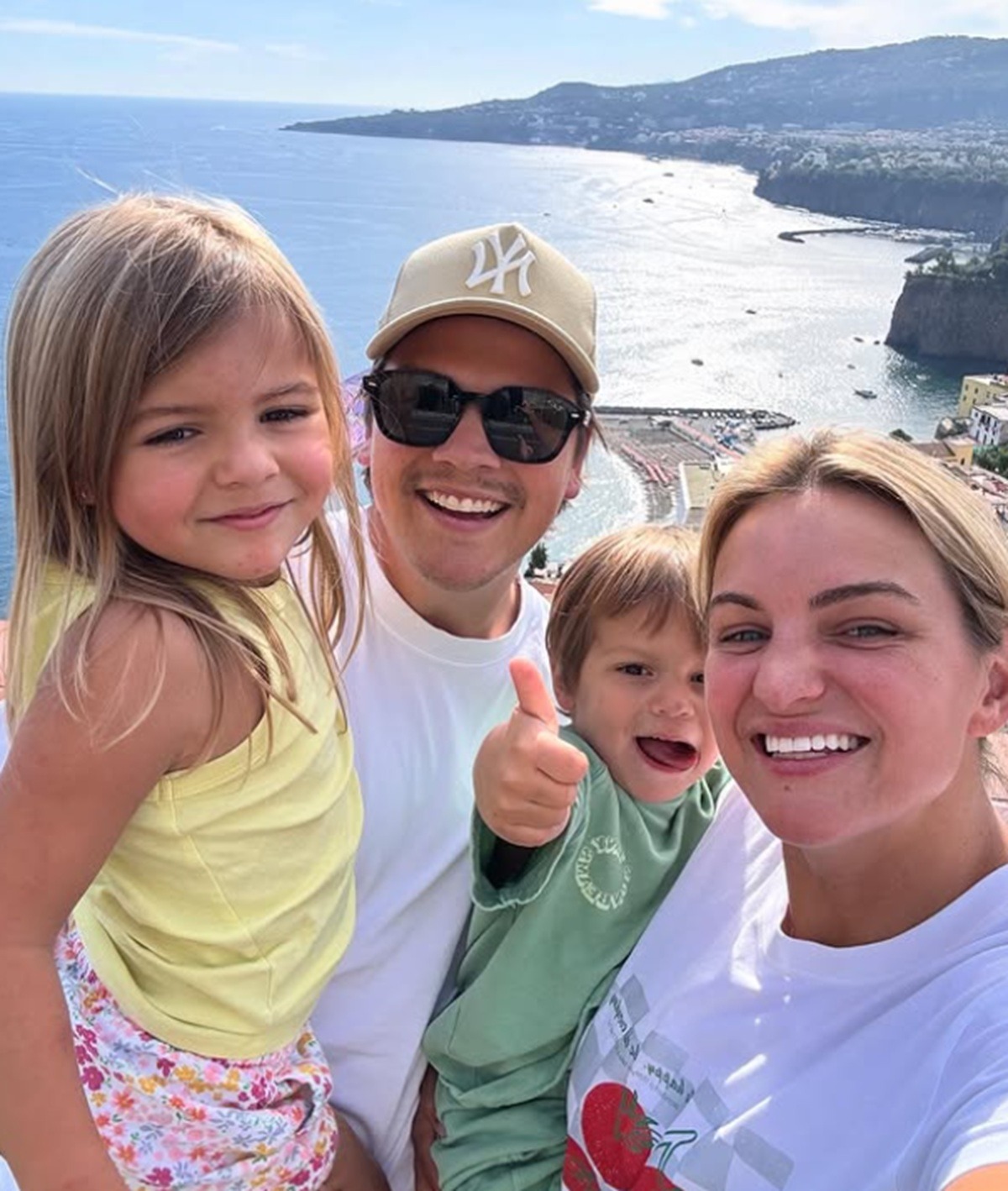 Dans cette photo, Ludovick arbore un look plus décontracté, en compagnie de sa famille. Le petit Cali a l’air de bien s’amuser en Italie: