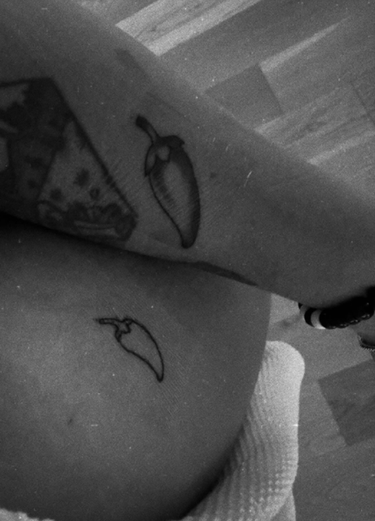 Dans les deux clichés qui suivent, Ludovick et Olivia se font faire un tatouage en couple. Désormais, ils arborent le même dessin de piment sur le corps: