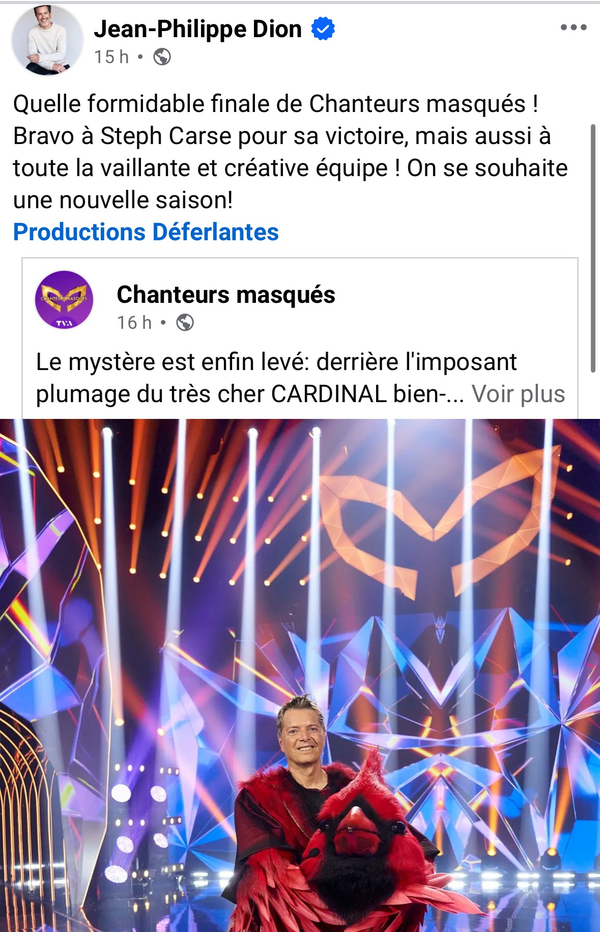 Après la révélation, le producteur de l’émission, Jean-Philippe Dion a tenu à faire une précision sur sa page et la voici :