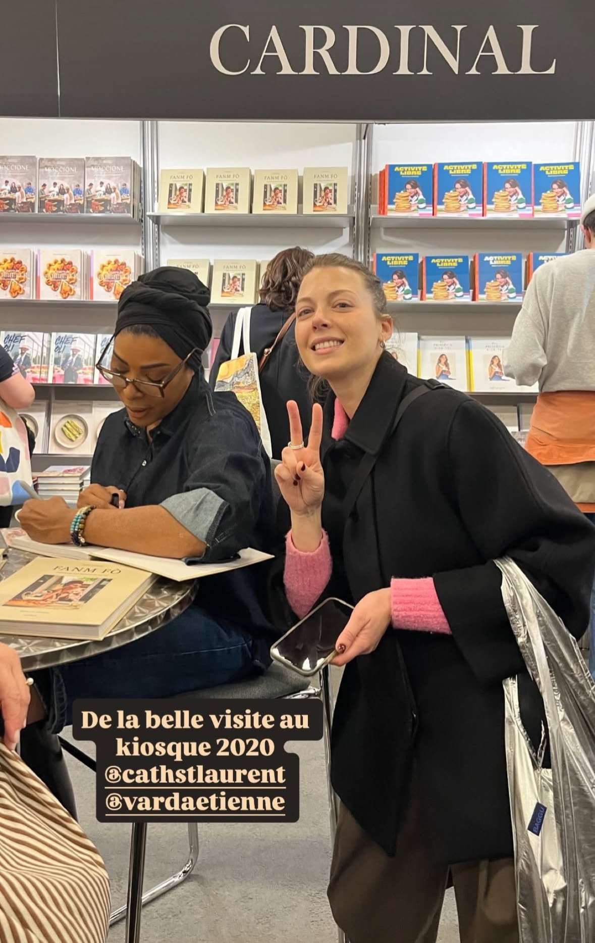 Il s’agissait de la comédienne Catherine St-Laurent. Elle est allée faire signer son livre par Varda Étienne qui partageait le kiosque de Sarah-Jeanne.