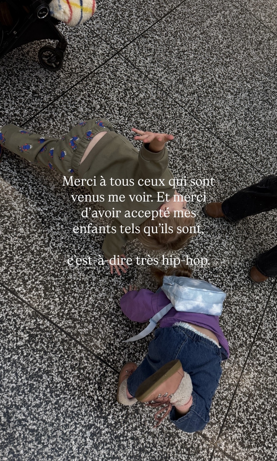 « Merci à tous ceux qui sont venus me voir. Et merci d’avoir accepté mes enfants tels qu’ils sont… C’est-à-dire très hip-hop »