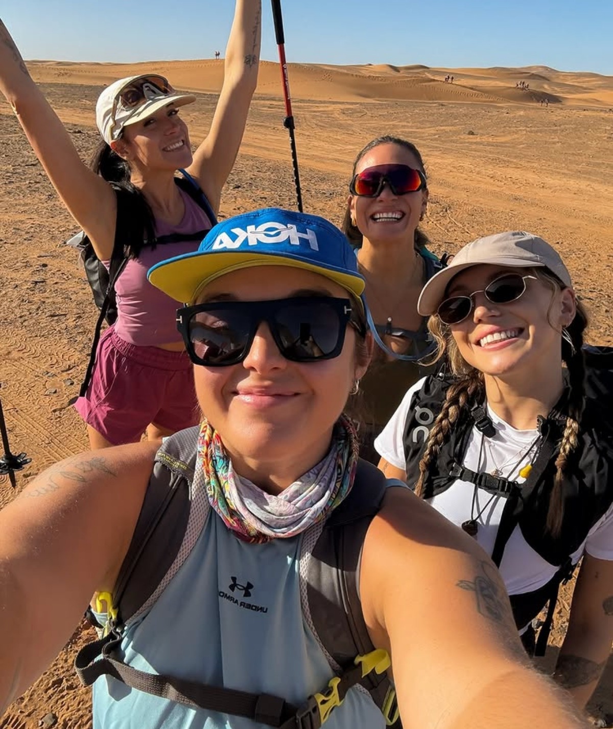 « DES KM DE SABLE, BEN DES CALCULS, BEAUCOUP BEAUCOUP DE FOUS RIRES, UNE PARFAITE ÉQUIPE QUI SE COMPLÈTE À MERVEILLE ET UN DÉCOR QUI SE PEUT PAS… JE RÊVAIS DE CETTE AVENTURE, MAIS ELLE EST ENCORE MIEUX QUE JE L’IMAGINAIS. JE SUIS OFFICIELLEMENT UNE EXPLORATRICE EN CHEF @TREKROSETRIP ! HA PIS MERCI BEAUCOUP @ON POUR L’ÉQUIPEMENT DE FEU. »