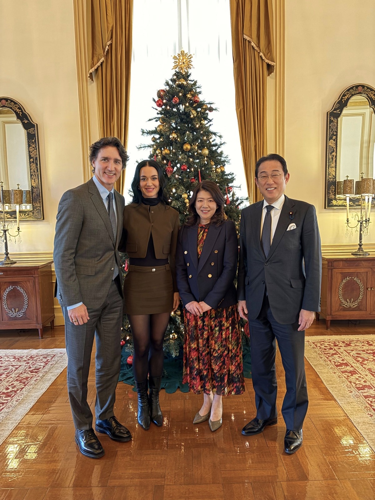 Dans les dernières heures, les amoureux ont pris la pose aux côtés du couple japonais, devant un magnifique sapin.