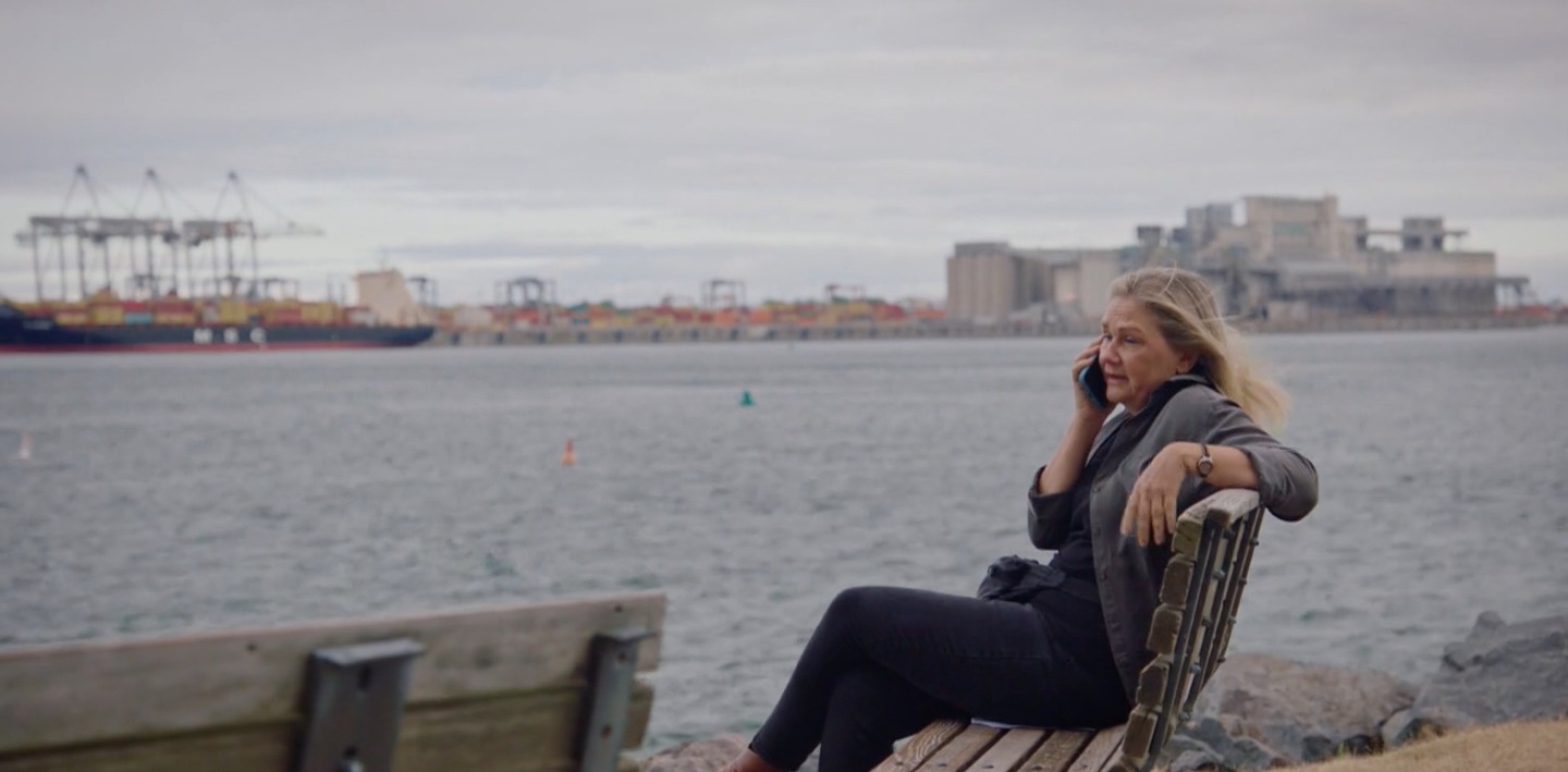 Durant cet appel, la détective privée était assise sur un banc, seule au bord de l’eau. Elle n’était visiblement pas dans son assiette.