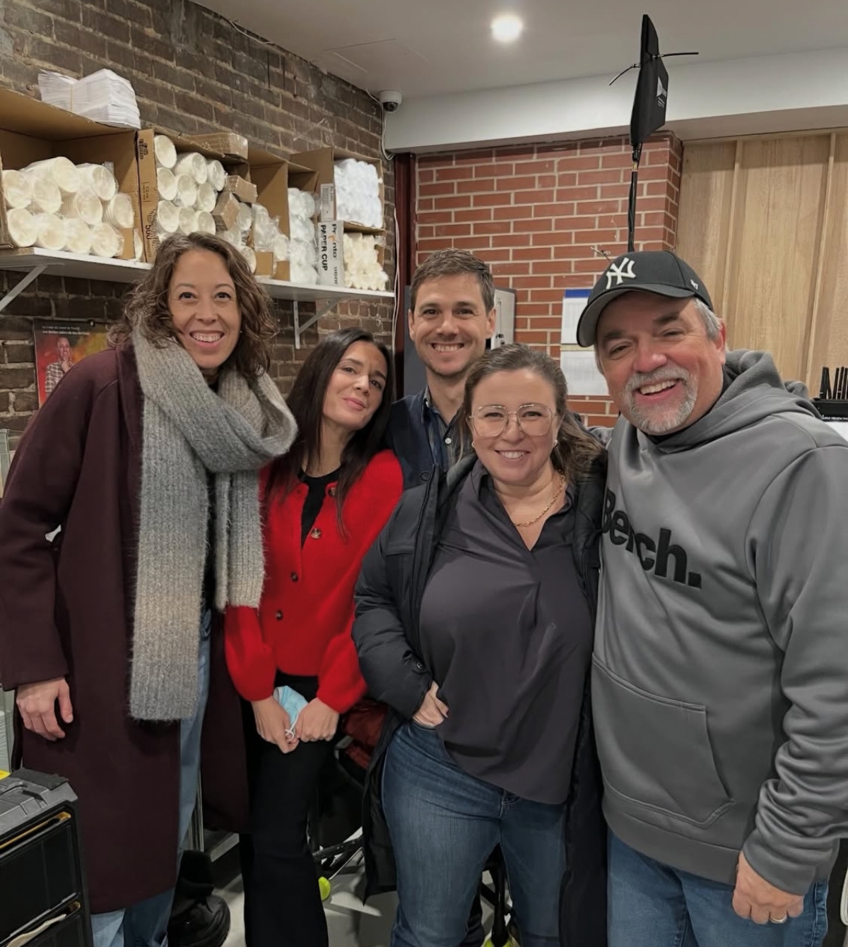 Ici, Mélissa se trouve en compagnie de membres de son équipe pour Mea Culpa: