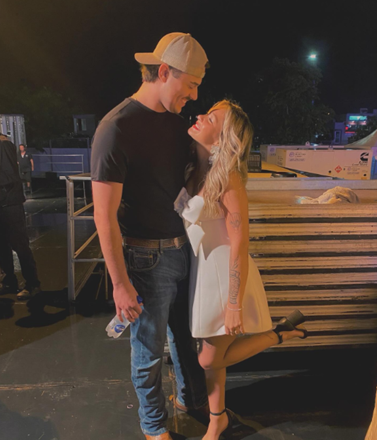 Les voici en train de se regarder dans les yeux. Romie porte une robe blanche élégante, tandis que Joël a opté pour une casquette. Il la porte à l’envers.