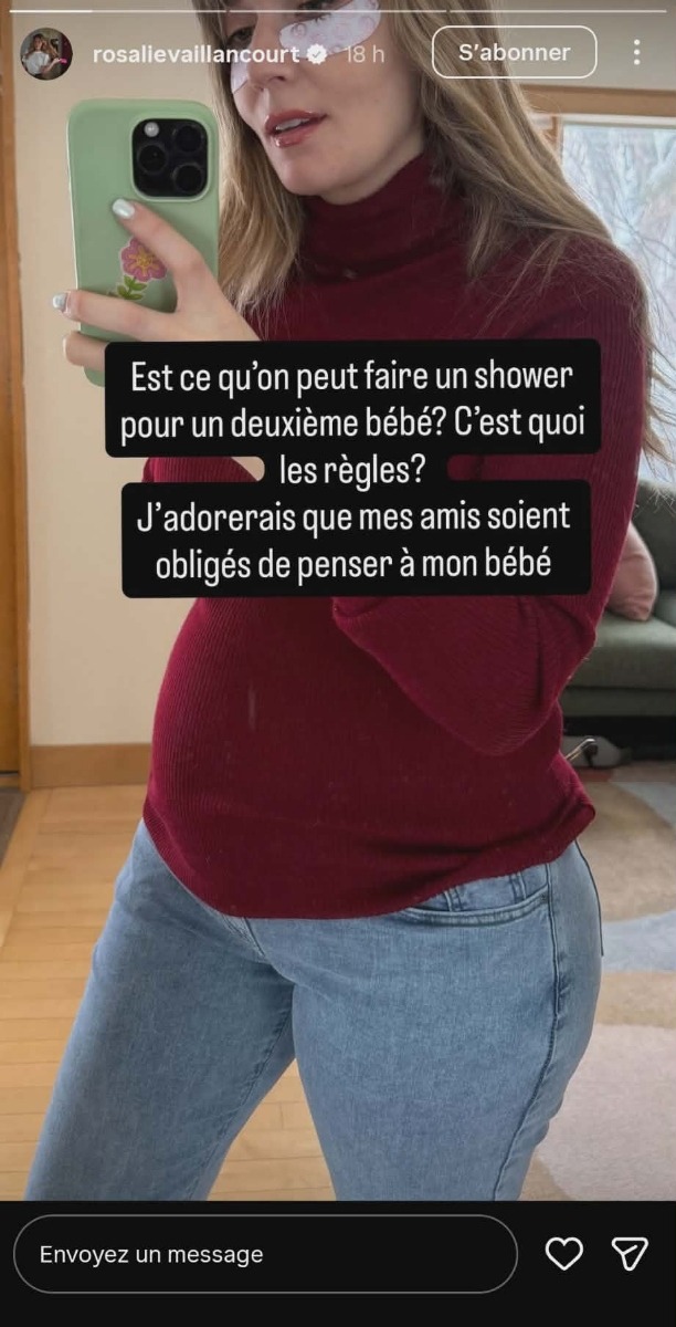 Le 21 décembre dernier, dans une publication, Rosalie Vaillancourt a annoncé qu’elle attendait son deuxième enfant. Dans les dernières heures, elle a partagé une nouvelle photo d’elle enceinte.