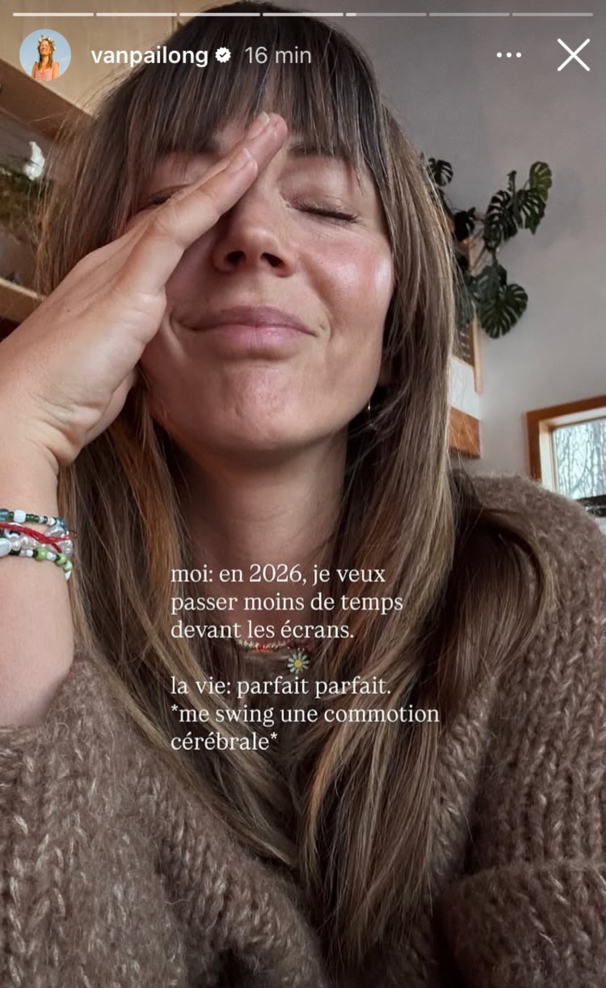 Après cette mésaventure des plus douloureuses, la pauvre Vanessa s’est exprimée à ce sujet sur sa page. Elle explique vouloir tirer un peu de positif de cette blessure: en effet, cela lui permettra de réduire son temps devant les écrans. Après tout, ceux-ci sont déconseillés après une commotion cérébrale.