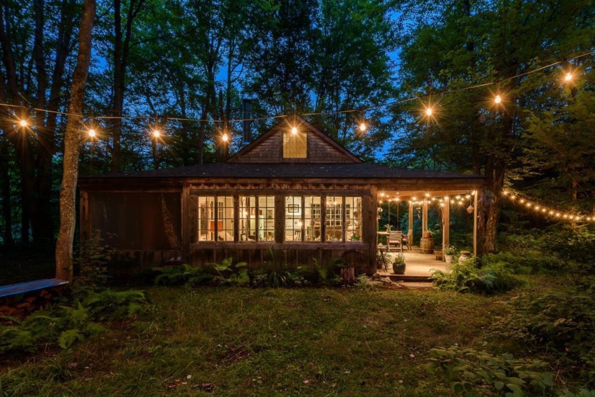 La maison de style « farmhouse » allie à la fois modernité et cachet et est nichée sur un terrain de plus de 6 acres où coule un joli ruisseau. Une autre cabane, plus petite et rustique, est d’ailleurs posée près de celui-ci. Le tout est complété par une pergola, un poulailler et un garage détaché.