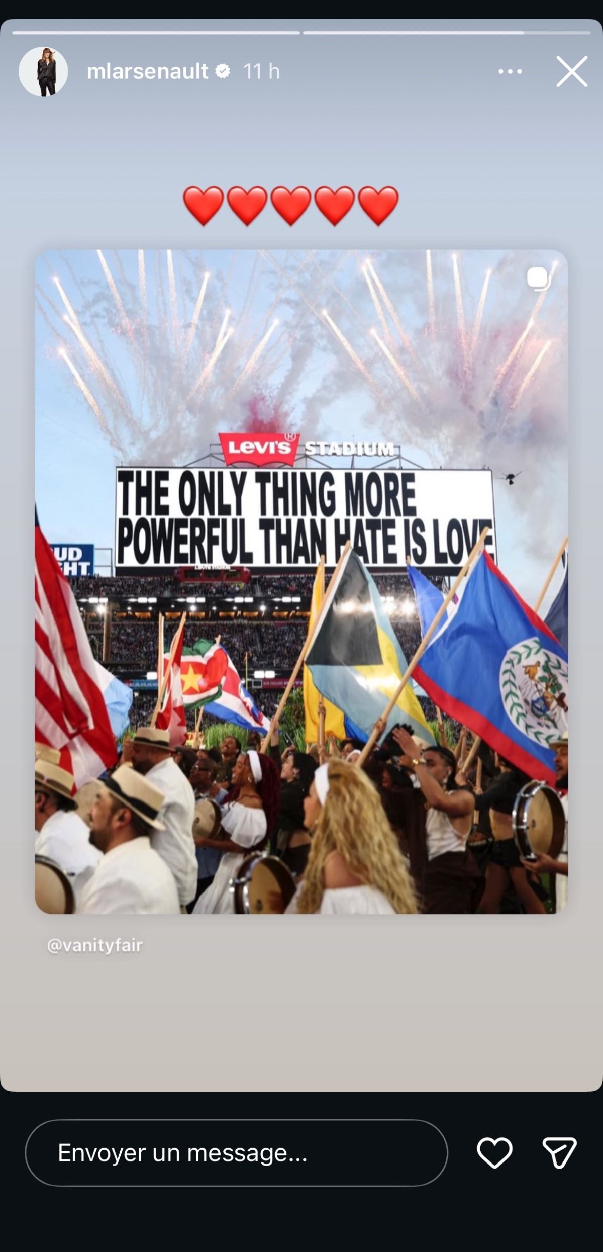 Finalement, le message le plus important de la soirée revient à Bad Bunny et a été partagé et repartagé par plusieurs, dont Marie-Louise Arsenault