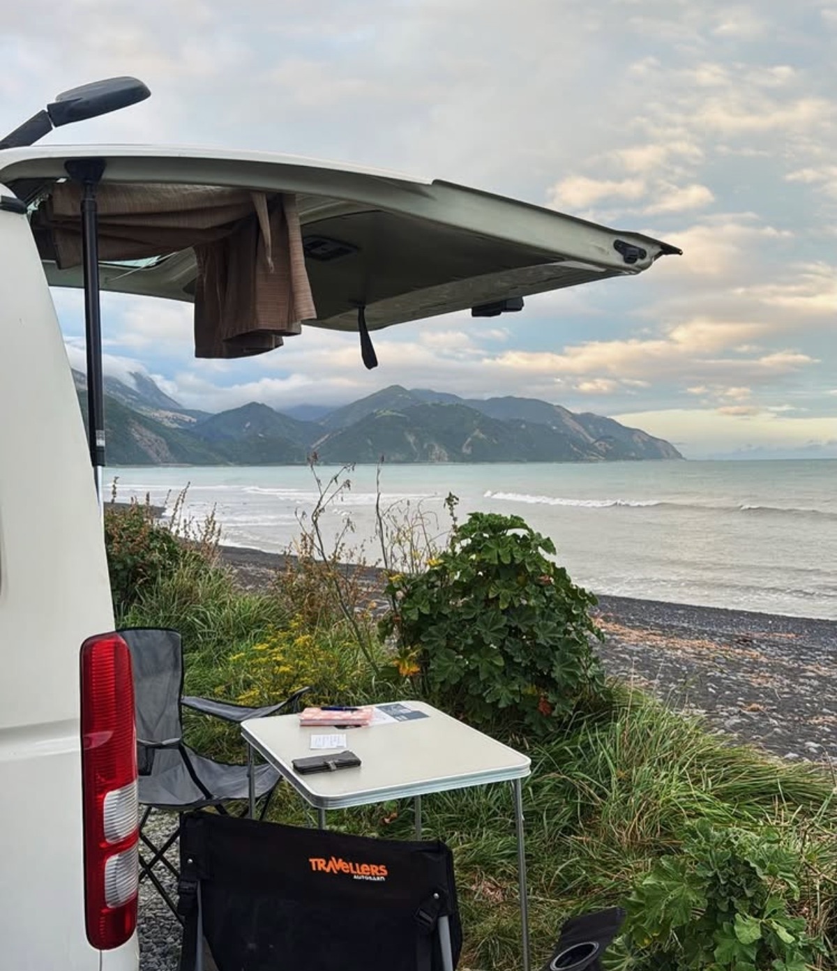 La portière arrière du coffre est ouverte, et une petite table été organisée en-dessous pour pique-niquer. Visiblement, c’est un bon moment qui s’annonce: