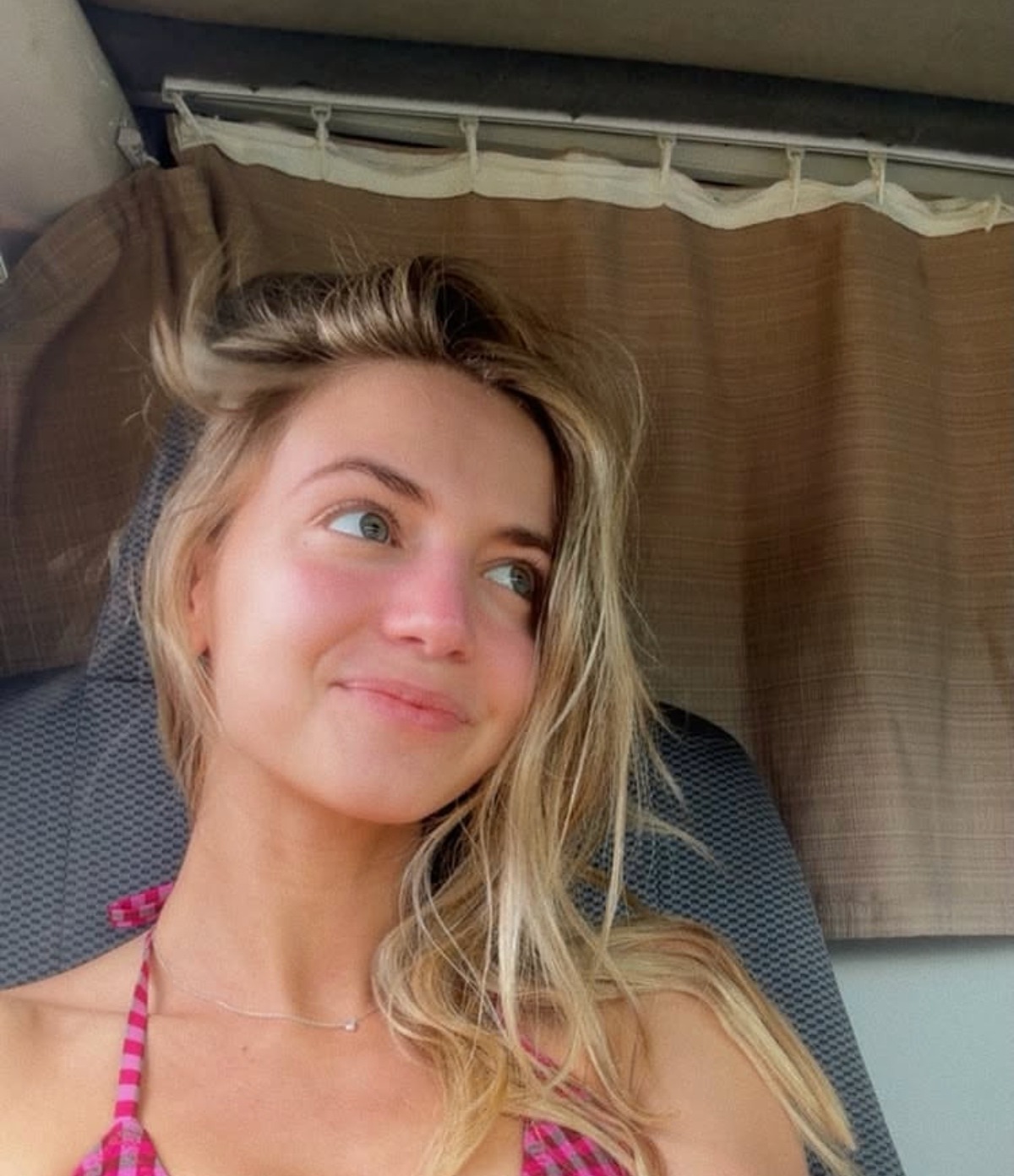 Dans cette seconde image de son périple, Ludivine a tout l’air d’être assise dans un véhicule. Elle a les joues rouges, après avoir profité du soleil: