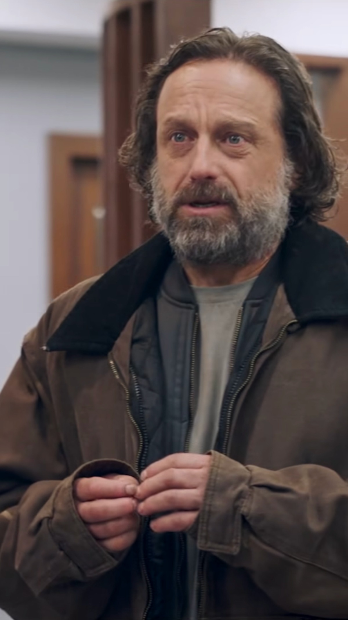 « On m’a offert un personnage extraordinaire, qui est un homme qui travaille le bois, un ébéniste qui n’a jamais voulu faire de mal à personne. Je trouvais intéressant de travailler un personnage qui, comme moi, a cessé de consommer et qui, tranquillement, est en train de se retrouver. J’ai proposé de créer une forme d’autisme chez lui, où tout d’un coup la confusion le gagne. Il va développer un langage, une manière de se protéger qui deviendra inaudible »