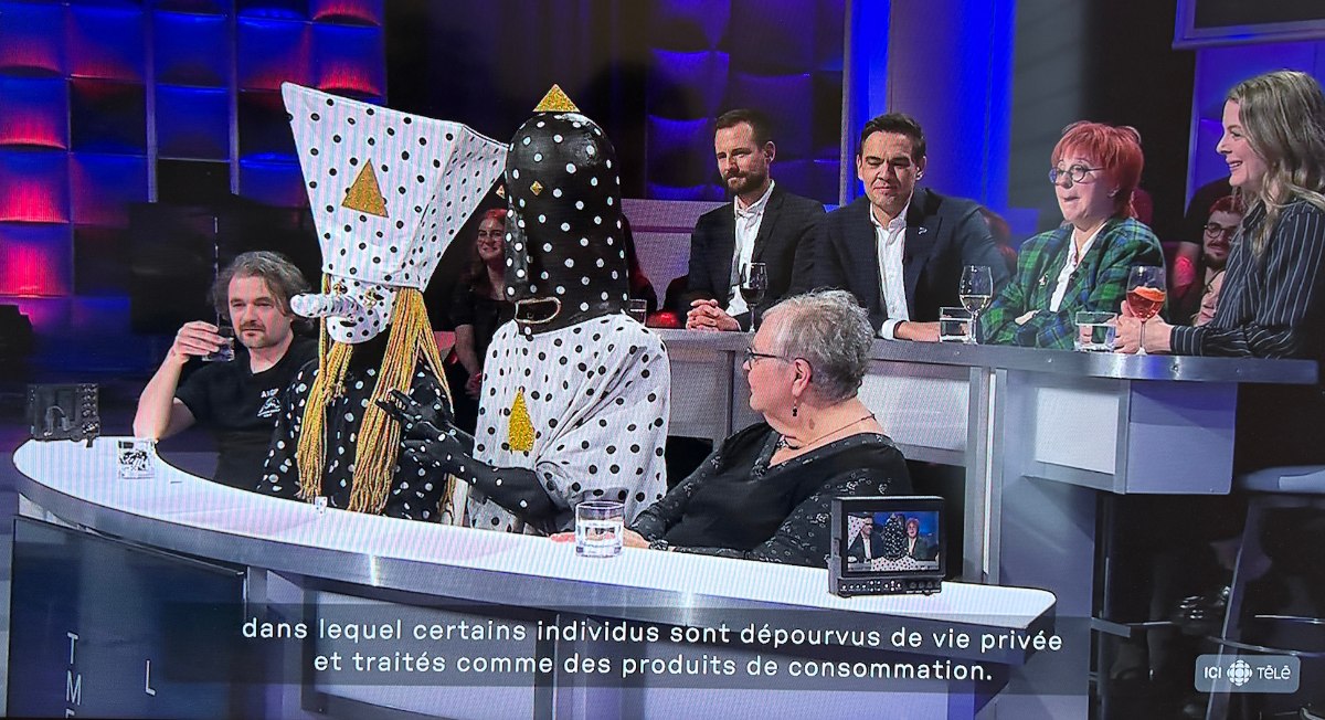 « J’ai tout aimé!!!! , La musique, le beat, l’anonymat, les personnages… Ça doit être fou en show. S’ouvrir, sortir du cadre svp, ça fait du bien de voir ça! Merci! »