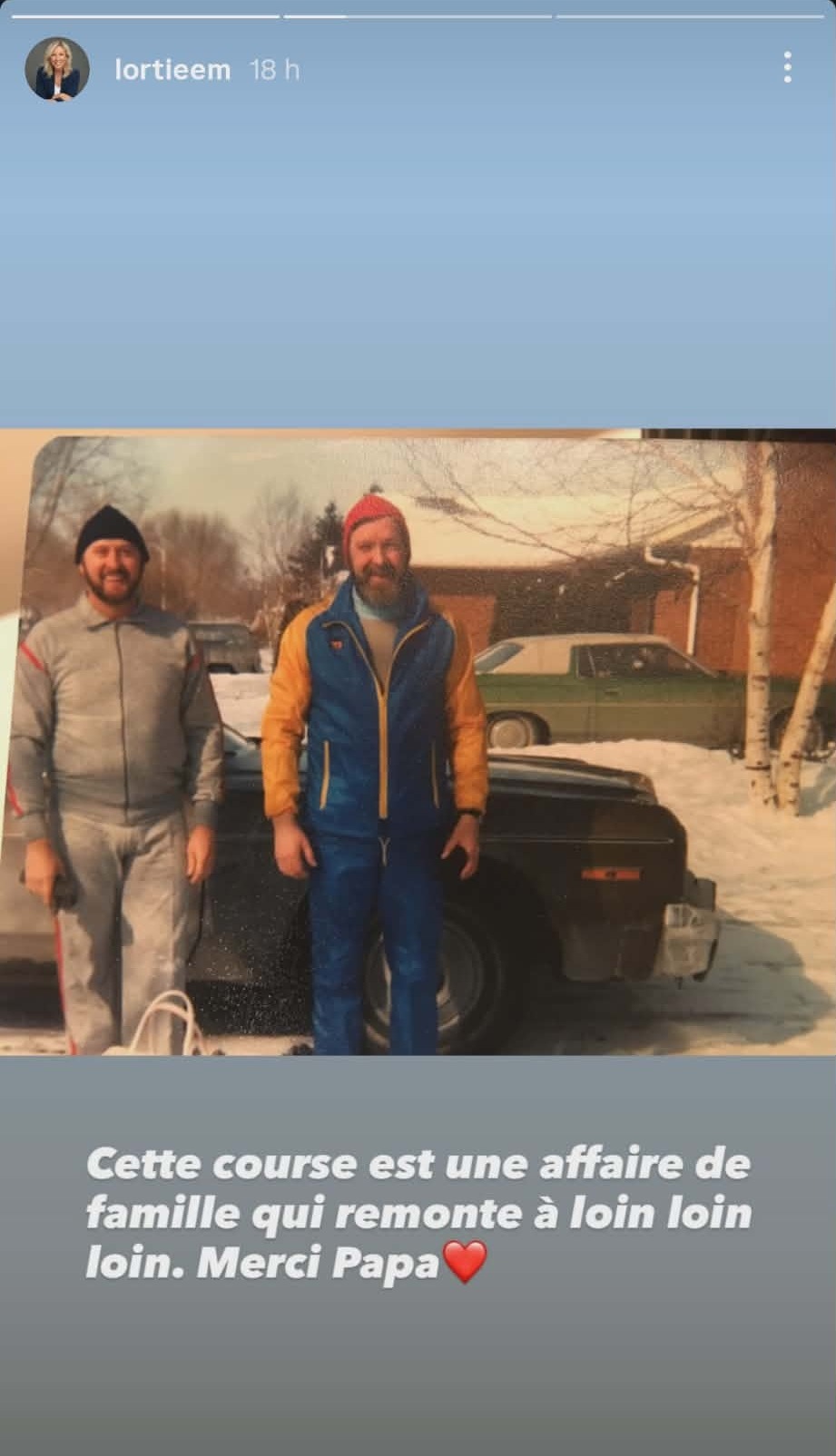 « Ma soeur, la vraie coureuse de la famille garde la tradition vivante depuis quelques années maintenant. Bravo @lortieamon !! »