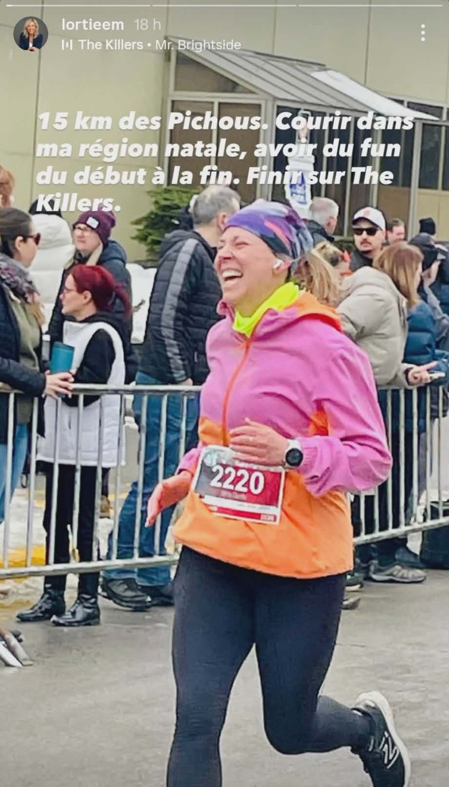 « 15 km des Pichous. Courir dans ma région natale, avoir du fun du début à la fin. Finir sur The Killers. »