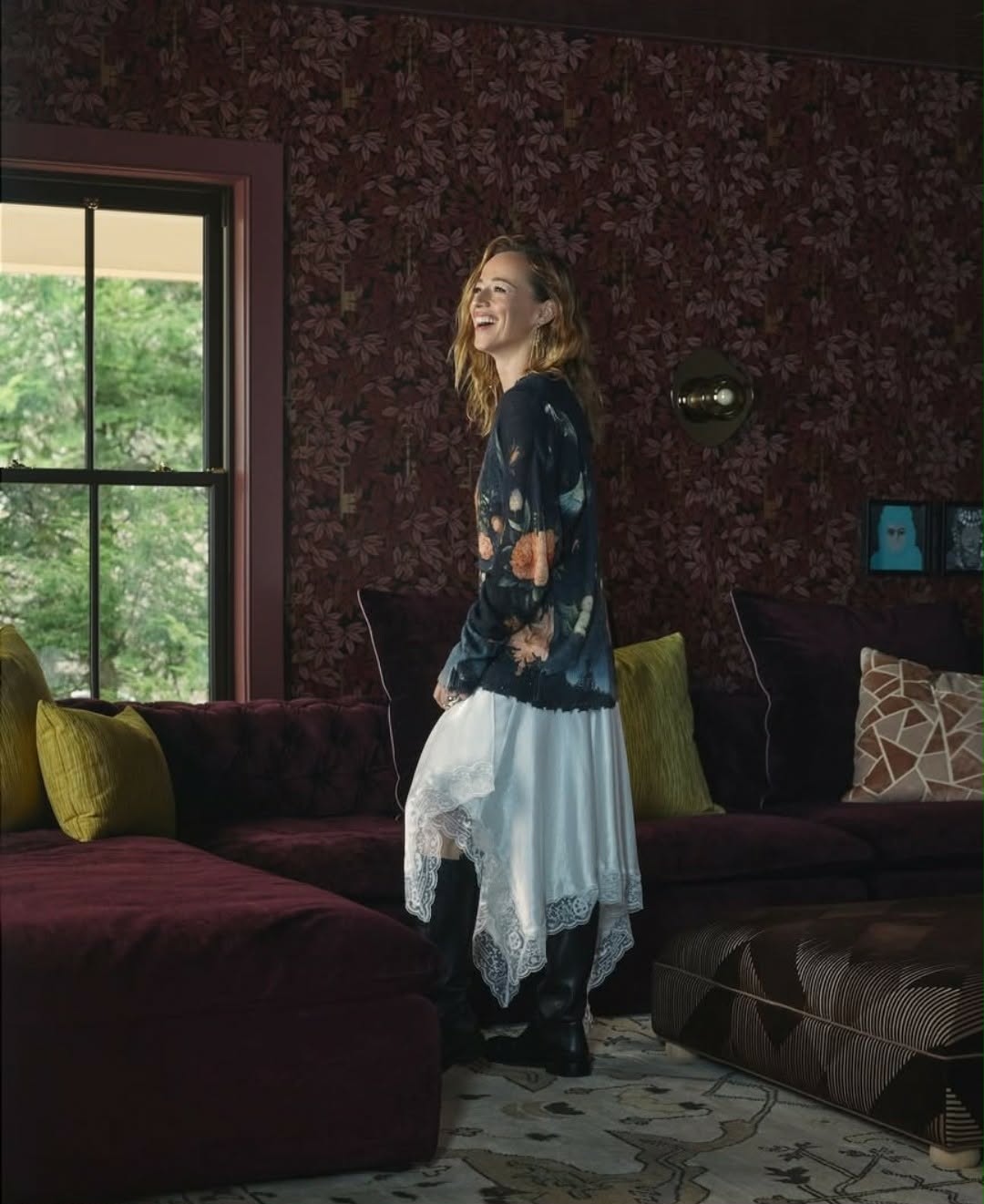 Le style vestimentaire de Karine et le superbe papier peint ne décoivent pas.
