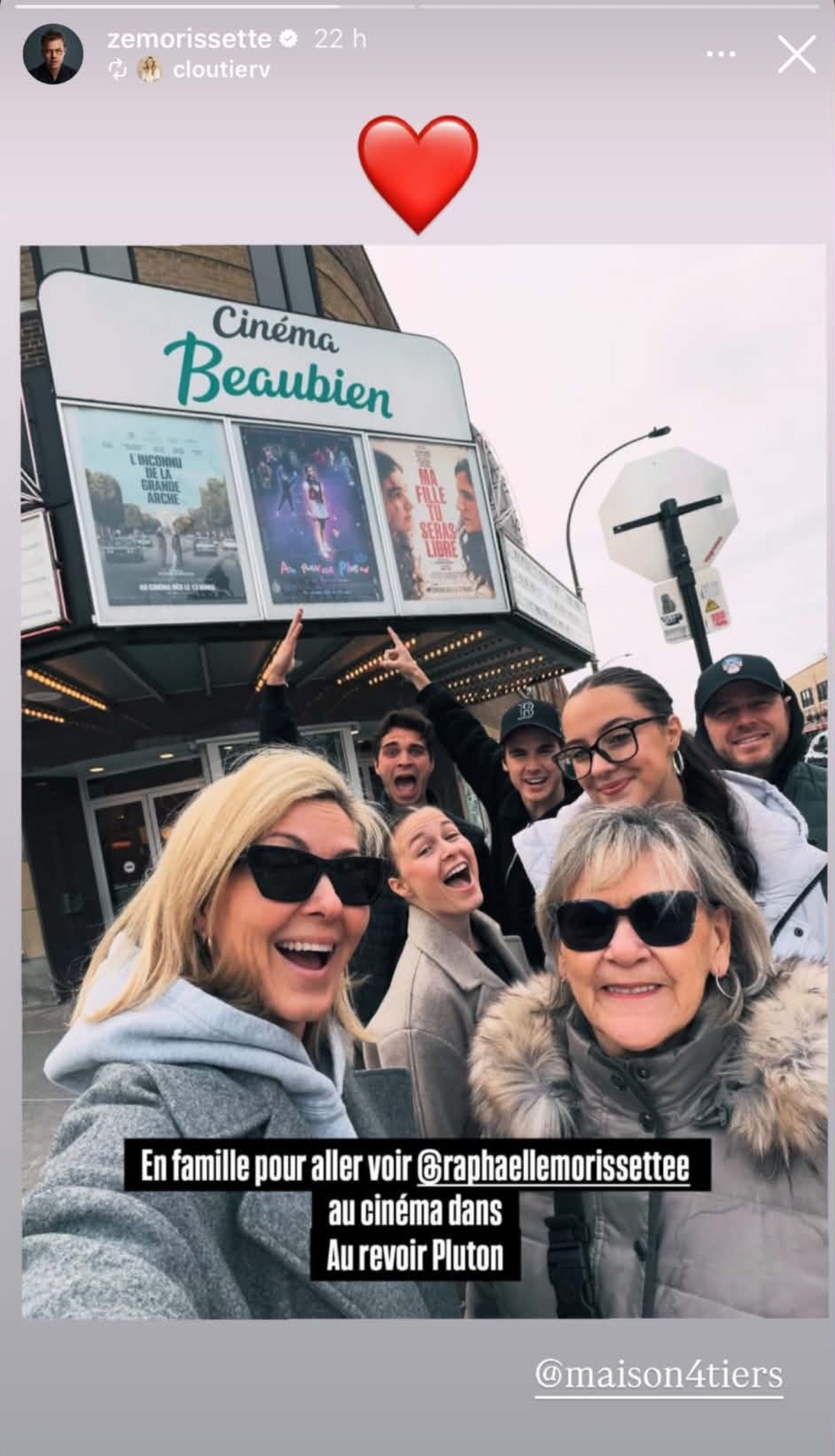 « En famille pour aller voir @raphaellemorissette au cinéma dans Au revoir Pluton »