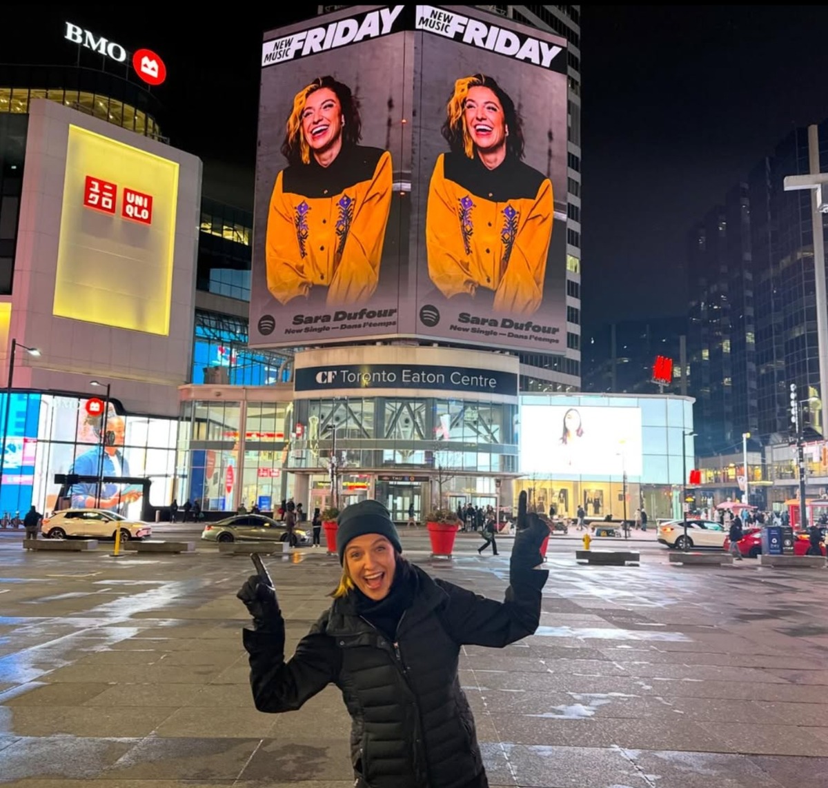 Si elle a désiré se rendre là-bas en vitesse, c’était pour voir apparaitre son visage sur les grands panneaux publicitaires du Billboard Spotify, sur les portes du Eaton Center.